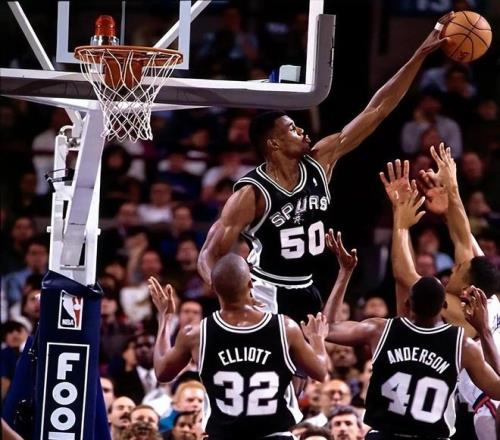 1987年22岁的大卫-罗宾逊参加选秀大会,马刺用状元签将其摘下,之后罗宾逊去海军服役两年,1989年才正式登陆NBA,他也因此得到了“海军上将”的外号。上将身高214cm,他在马刺效力至退役,为马刺拿下两个总冠军,自己也拿下一个MVP,一个最佳防守球员,一个最佳新秀,入选过四次一阵、四次一防、10次全明星,得分王、篮板王、盖帽王他也分别获得过一次。