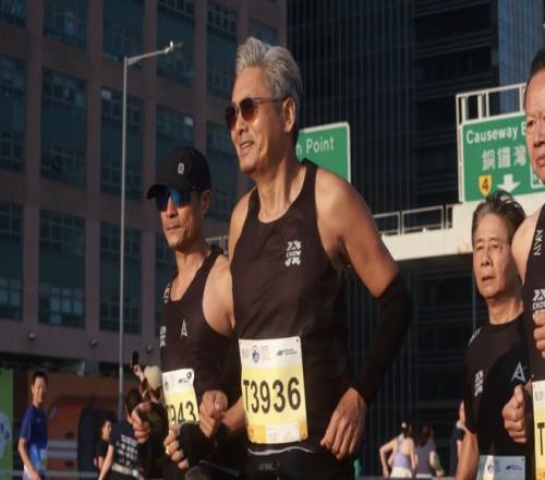 四战港马带“银发艺人团”一起完赛,周润发是推广跑步的典范
